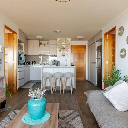 Denne ferielejlighed tilbyder strand- indkvartering med et udstyret køkken i Reñaca område i Vina del Mar. Ferielejligheden har 2 soveværelser og 2 badeværelser samt en terrasse.